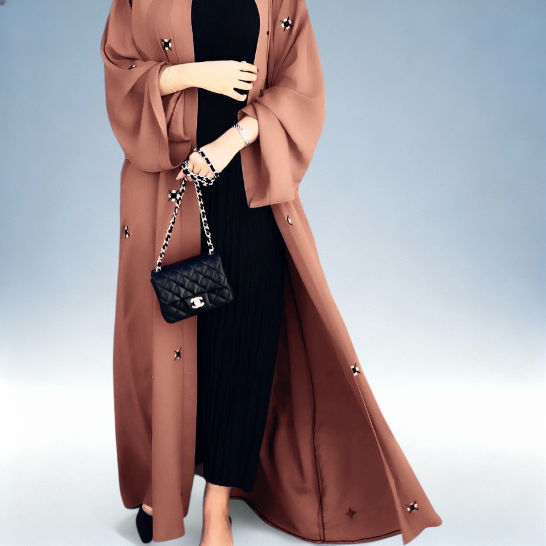 Luxuoso e versátil, este vestido cardigan é feito em tecido premium de alta qualidade e destaca-se pelos detalhes em contas delicadas e design refinado, perfeito para eventos formais, festas elegantes ou para adicionar um toque de glamour ao teu guarda-roupa.