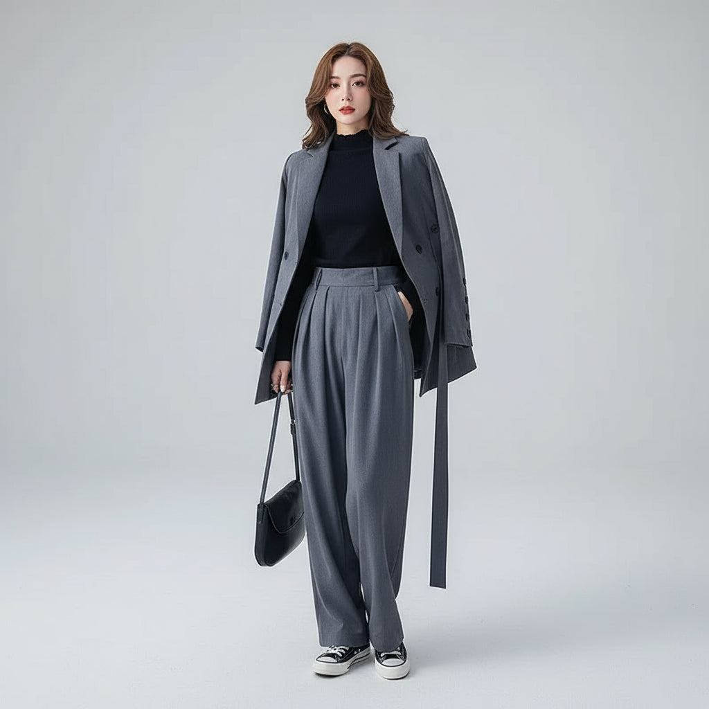 Clara Mode: Fato Urbano com Calças Amplas e Faixa Ajustável - KUKA Brand