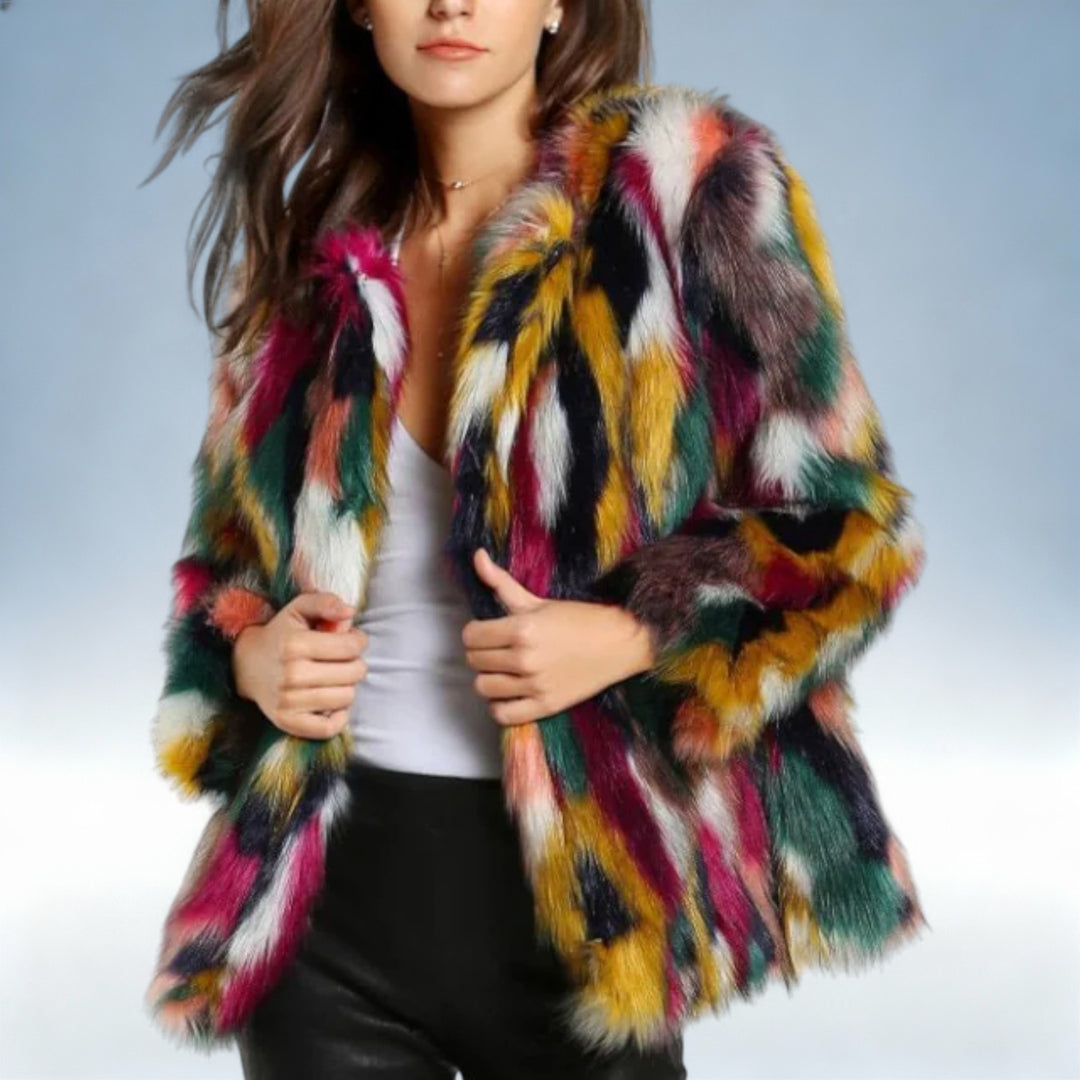 NORA — Casaco Pele Sintética Colorido em Tecido Premium | Elegância Vibrante