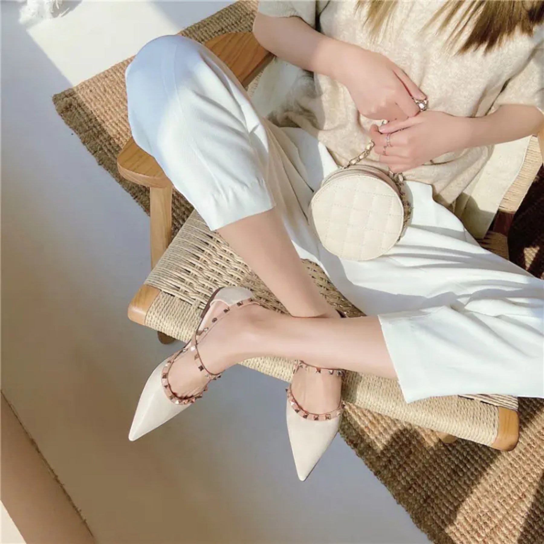 Elegância floral em cada detalhe. Design sofisticado flat com detalhes em tachas e acabamento em verniz que combina conforto e modernidade.